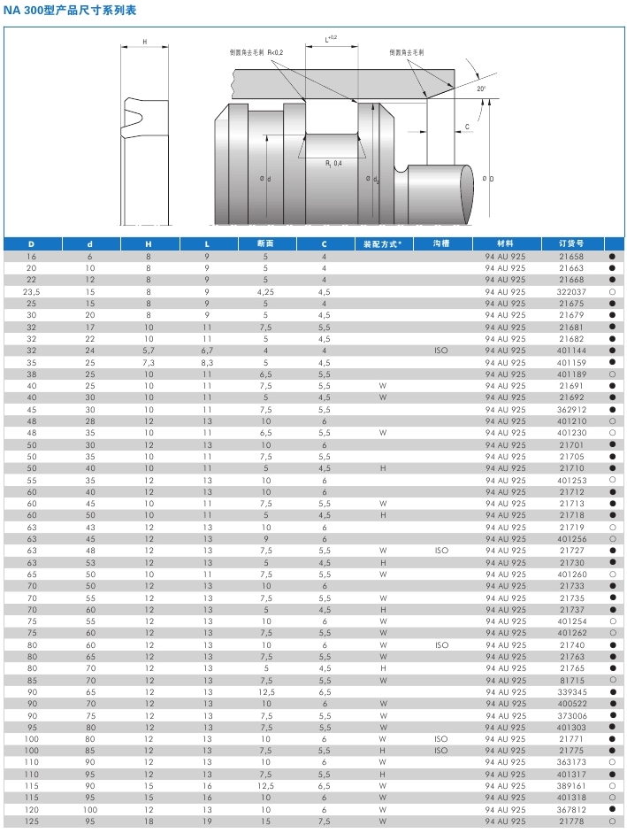 孔用U型密封NA300