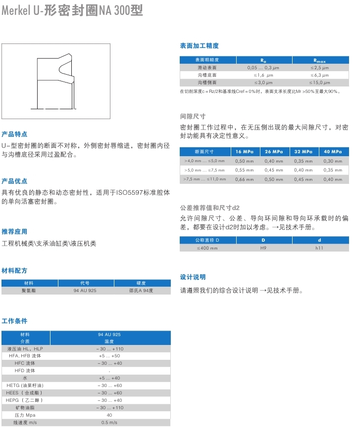 孔用U型密封NA300