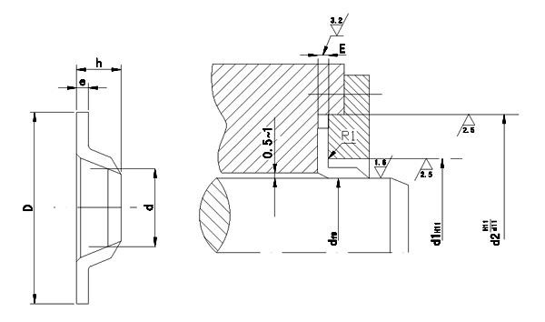 J型防塵圈具有結(jié)構(gòu)簡單、截面小、安裝方便、成本低等特點,廣泛用于油缸和氣缸中,防止外界污染物混入液壓系統(tǒng)和密封系統(tǒng),有時亦用于直接密封。主要材料有丁晴橡膠NBR和氟膠FKM,設(shè)計選用時可參照HG4-332-66標(biāo)準(zhǔn)。